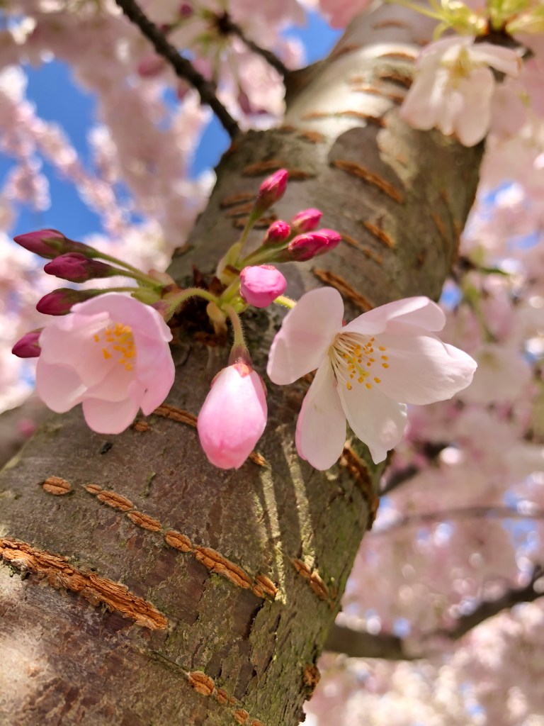 引っ越した時は、9月の終わり。ちょうど秋の始まりで、毎日どんよりとした曇り空そして毎日のように降る雨が私のホームシック気分を挑発しているかのようだった。そんな日々を5ヶ月ほど過ごしたある日、ダウンタウンにある職場へ歩いて向かっている時のことだった。毎日見ている木の変化に気がついた。なんだ?と思って足を止め近ずいてみると、ピンク色のつぼみだった。「え?さ・く・ら・さん?!ですか?」と思わず小声で木に話しかけてしまったくらいだった。木は黙っていたが、少し微笑んでくれているんだろう、と勝手に解釈した。