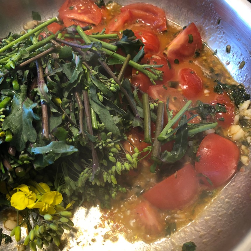 - kale flowers (handful) – if you don’t have them, use rapini.